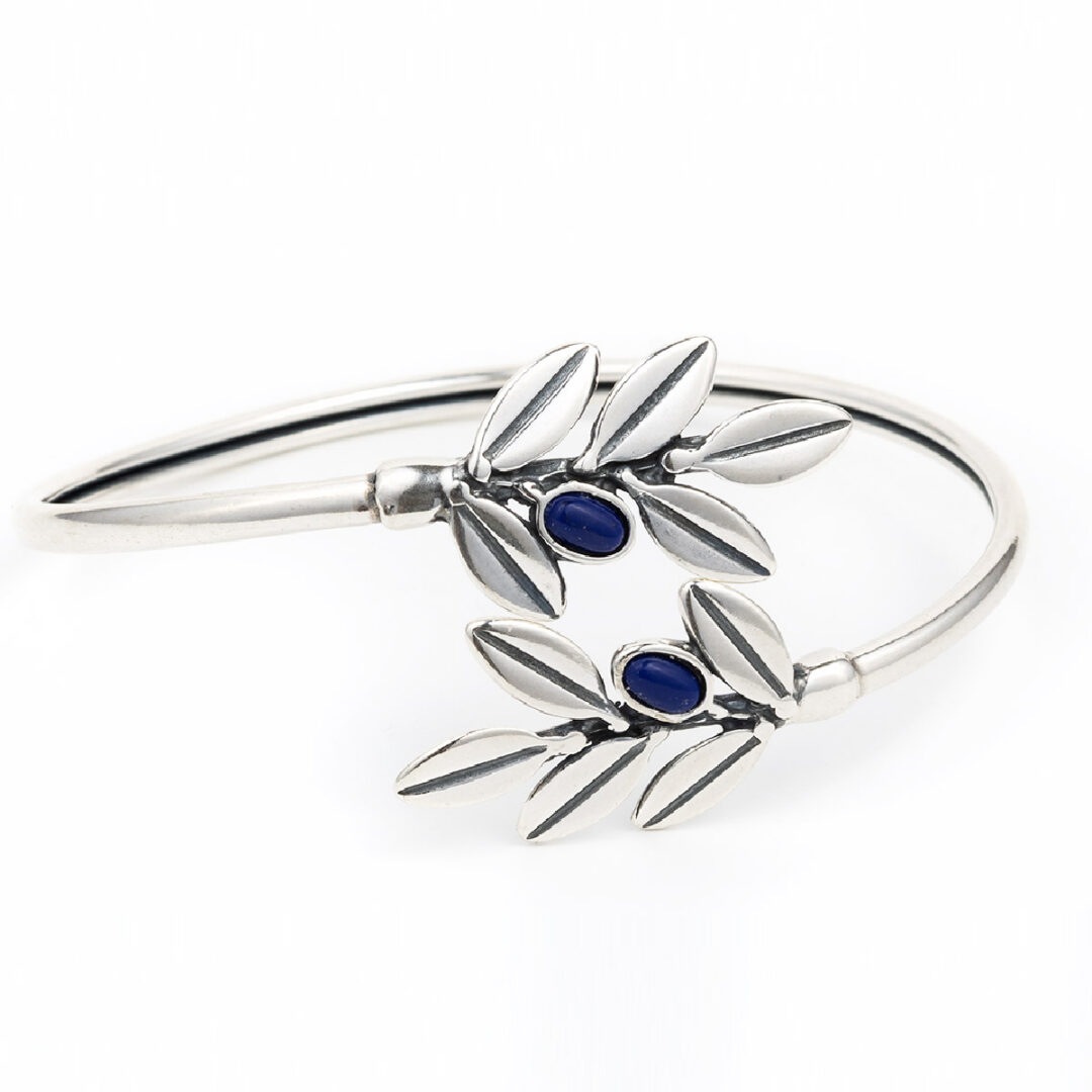Olive Leaves Silver Bracelet. A beautiful and elegant bracelet tribute to the olive branch, a symbol of peace, abundance and achievement. The olive wreath also known as kotinos was the prize for the winner at the ancient Olympic Games. It was an olive branch, of the wild- olive tree that grew at Olympia, intertwined to form a circle or a horse-shoe. According to Pausanias it was introduced by Heracles as a prize for the running race winner to honour his father Zeus. In the ancient Olympic Games there were no gold, silver, or bronze medals. There was only one winner per event, crowned with an olive wreath made of wild-olive leaves from a sacred tree near the temple of Zeus at Olympia. Olive wreaths were given out during the 2004 Summer Olympics in Athens in honor of the ancient tradition, because the games were being held in Greece.