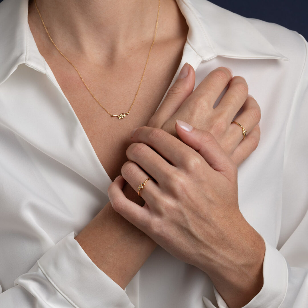 Olive Ring with Zircon – 14K Solid Yellow Gold