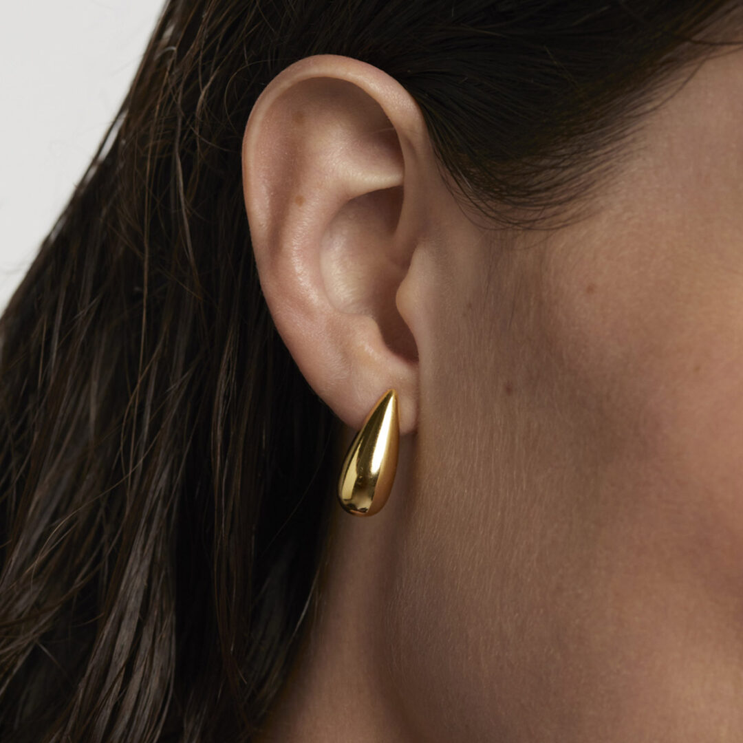 The Large Sugar stud earrings are 18K gold plated made in Sterling Silver with a statement drop shape.