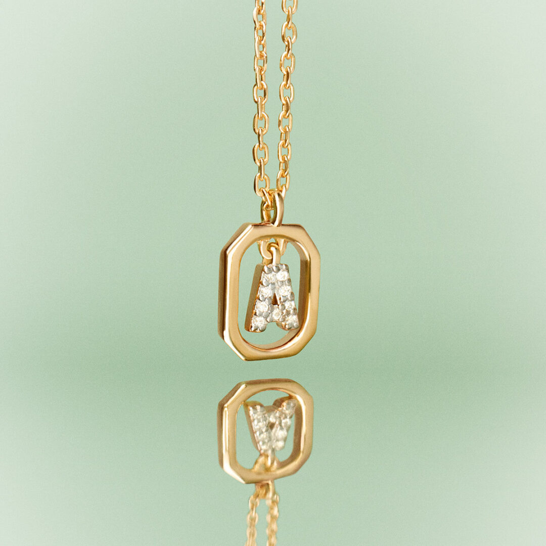 Mini and featherlight to wear, the Mini Letters were designed to make a statement despite their petite silhouette. Contemporary pieces with a vintage soul, the design features a floating shimmering letter framed by an octagon.
