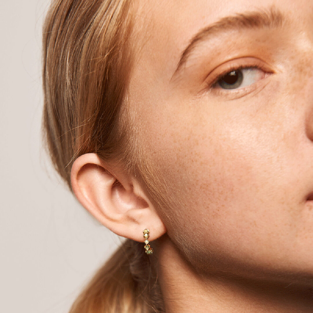Mint Bird earrings merge the purity and delicacy of the designs in Citric. Turquoise blue crystals hand-set in a Mother of Pearl base make an elegant bet for daily looks. Carefully polished and plated with 18 carat gold over 925 sterling silver.