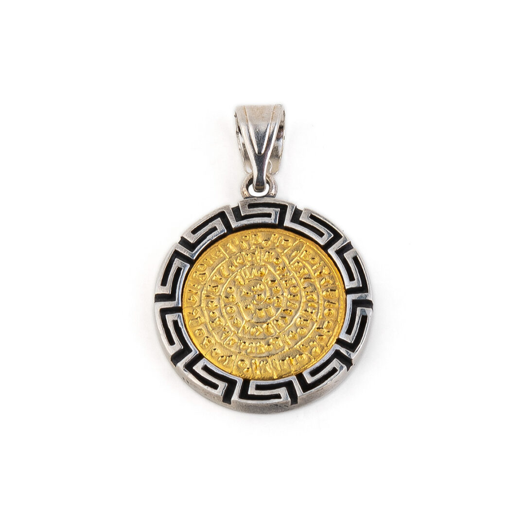 Phaistos Disc and Minoan Bee Pendant – 925 Sterling Silver and Gold Plated