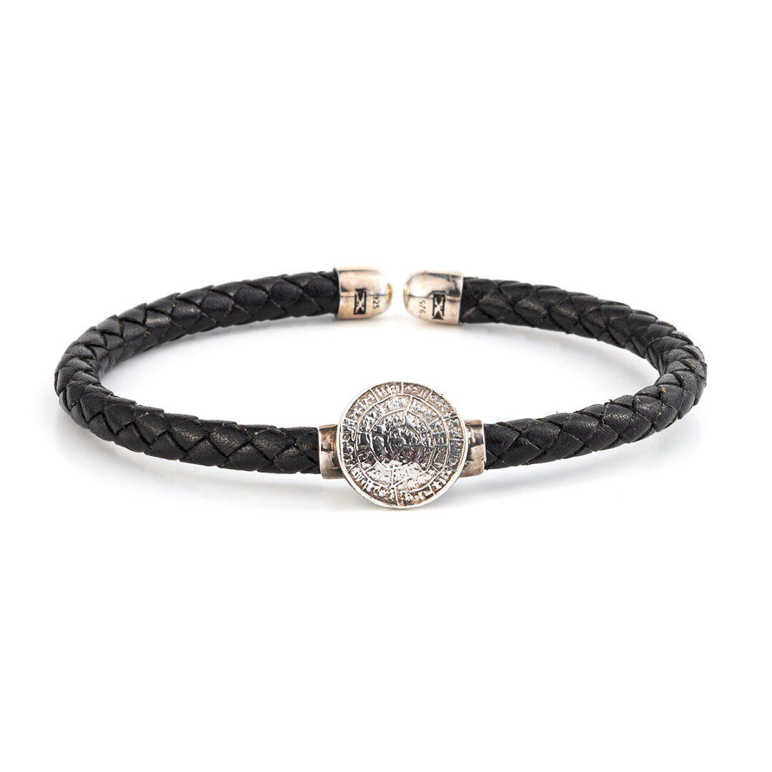 Phaistos Disc Leather Bracelet – 925 Sterling Silver