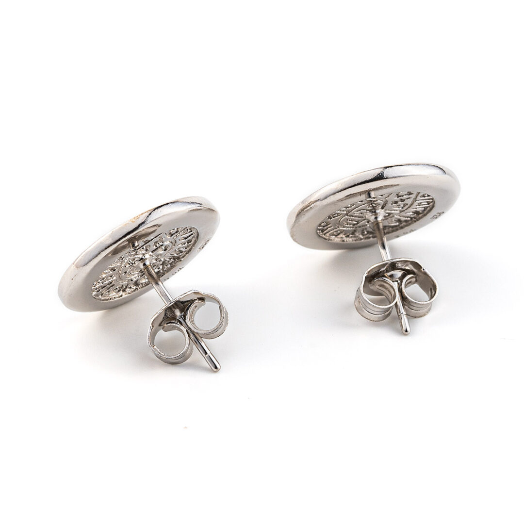 Phaistos Disc Stud Earrings – 925 Sterling Silver with Opal