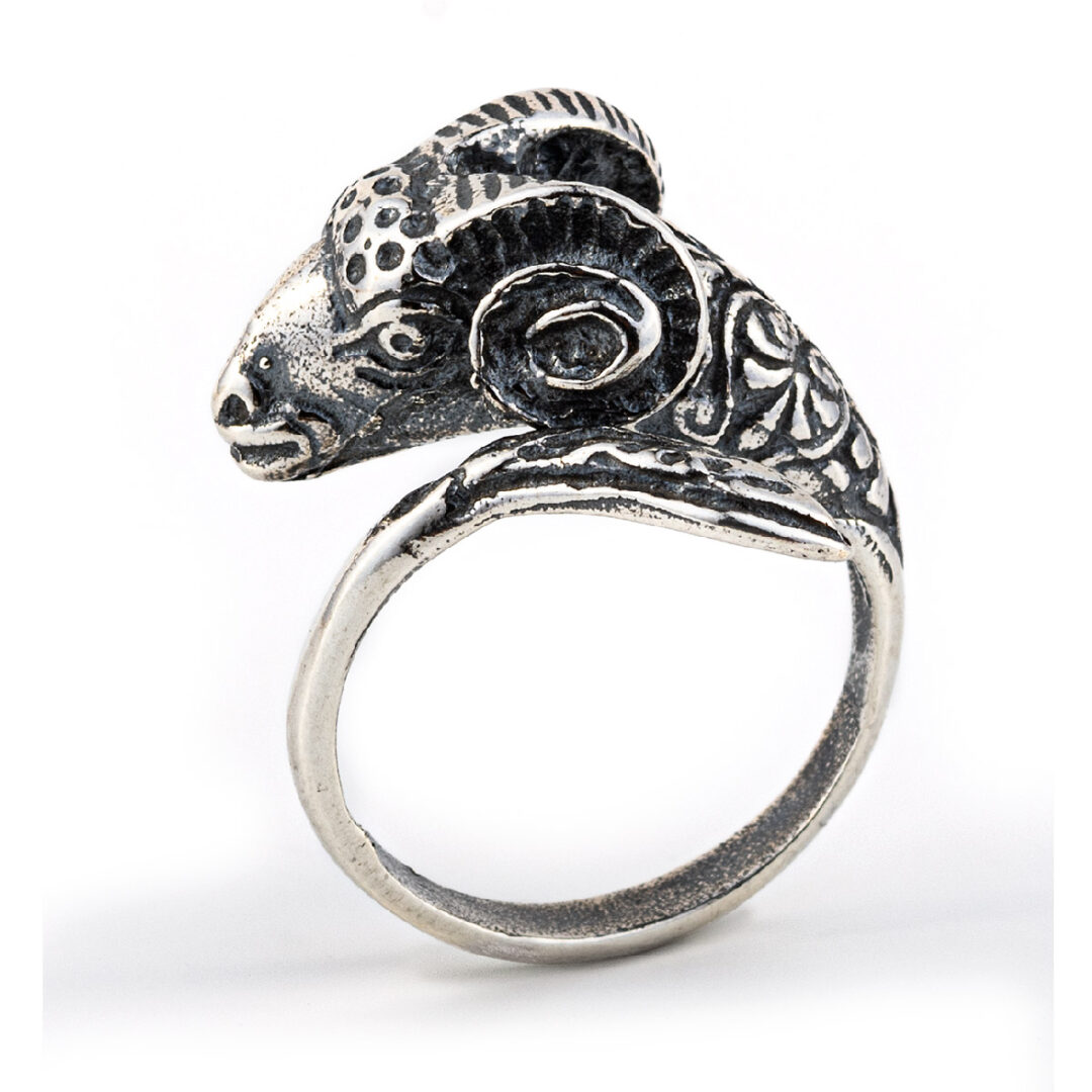 This beautiful handmade ring features a Rams Head design inspired by actual ancient Greek history. In ancient Greek mythology, the ram was symbol of virility and fertility, power and leadership. The ram’s head also symbolizes Aries the first sign of the zodiac.