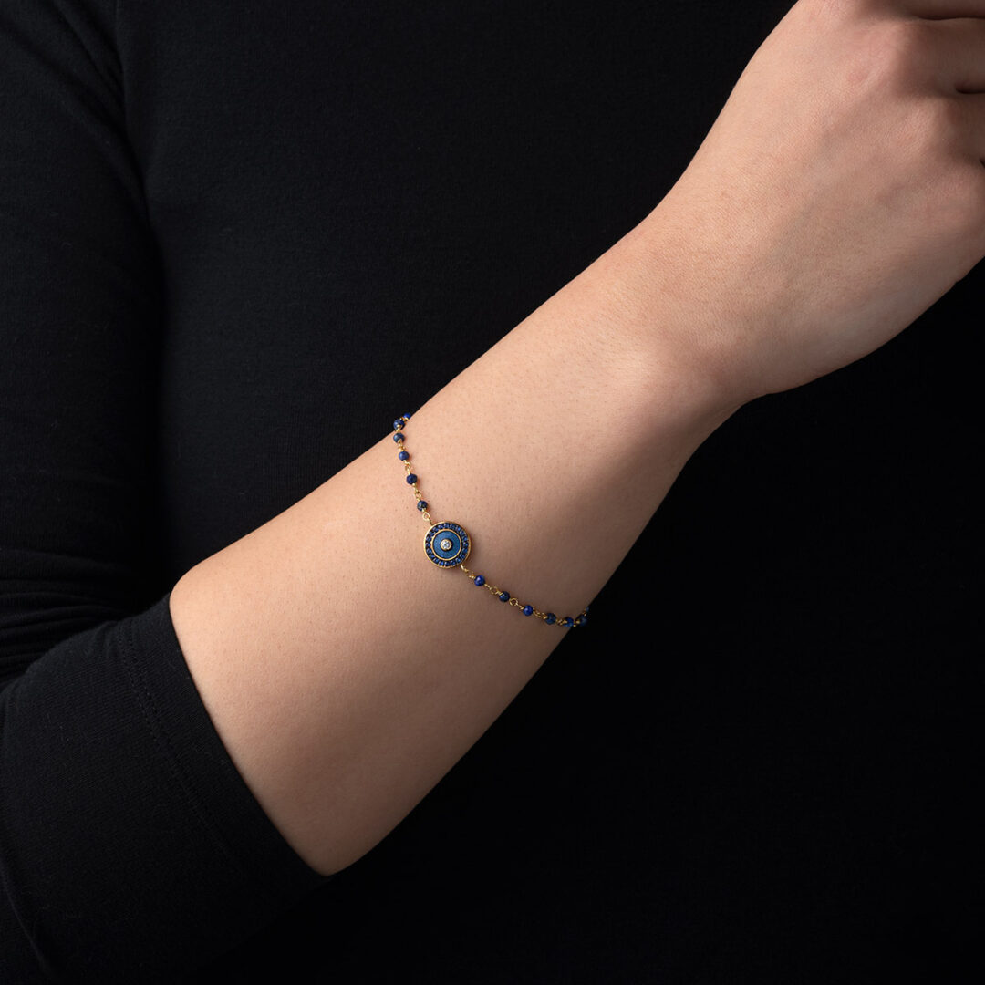 The symbol and superstition of the evil eye is one of the strongest symbolic images in the world. The earliest known evidence for belief in the evil eye goes back to ancient Greece and Rome. It is supposed to wear off evil to anyone who wears it and various cultures believe in that, however in Greece it’s blue because at that time blue eyes were not so common and were thought to give the evil eye, so the blue is like a mirror to them. Nowadays it’s widely known and has become a trend.