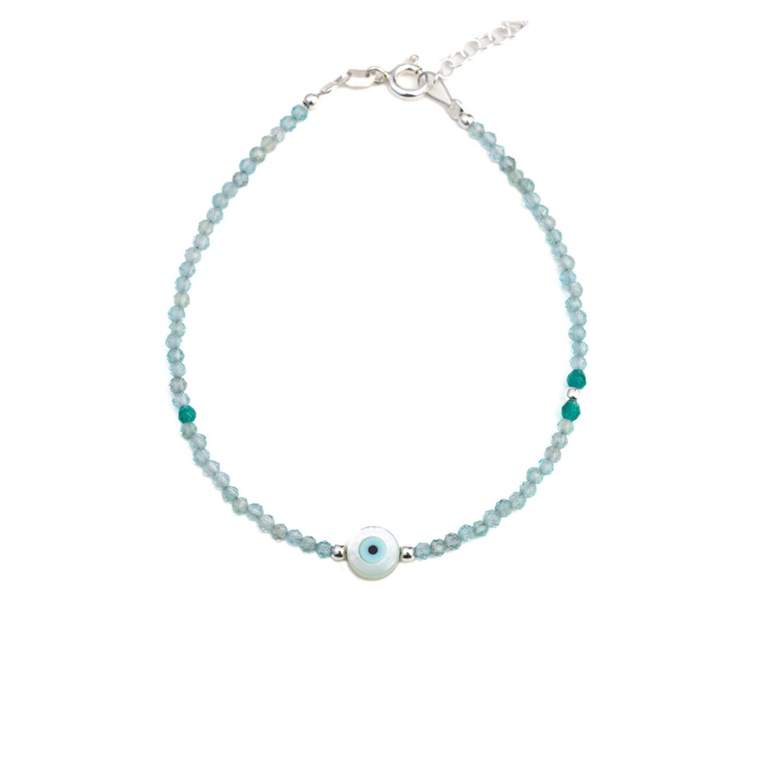 The symbol and superstition of the evil eye is one of the strongest symbolic images in the world. The earliest known evidence for belief in the evil eye goes back to ancient Greece and Rome. It is supposed to wear off evil to anyone who wears it and various cultures believe in that, however in Greece it’s blue because at that time blue eyes were not so common and were thought to give the evil eye, so the blue is like a mirror to them. Nowadays it’s widely known and has become a trend.