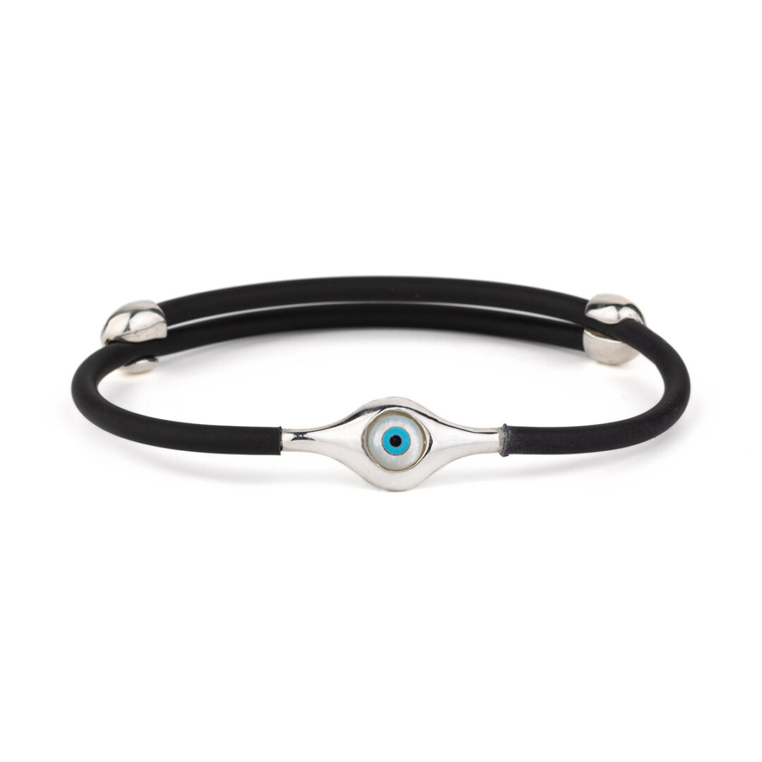 Round Evil Eye Caoutchouc Bracelet – 925 Sterling Silver