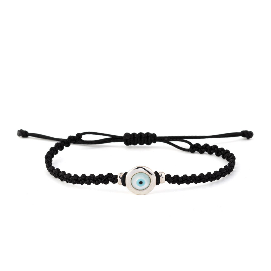 Round Fildisi Eye Black Macrame Bracelet – 925 Sterling Silver