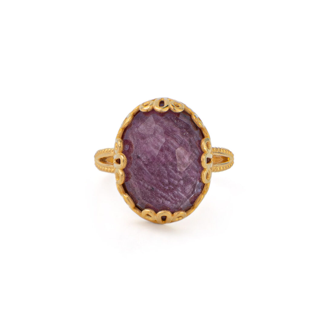 Ruby Oval Statement Ring – 925 Sterling Silver and Gold Plated