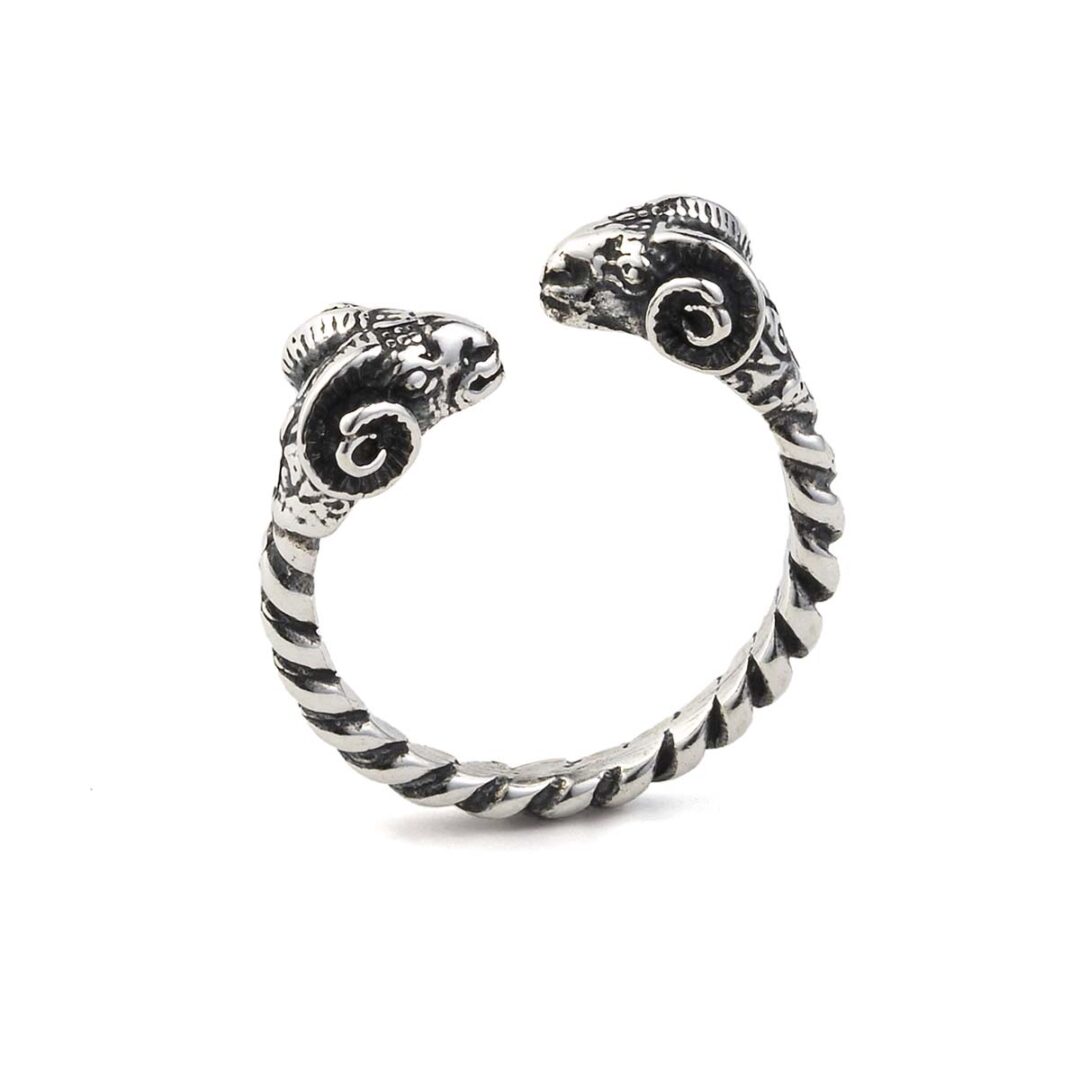 Silver Double Ram Head Ring