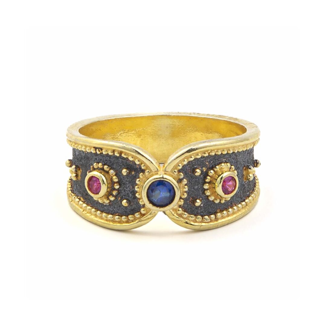 Byzantine ring with blue zircon stone.