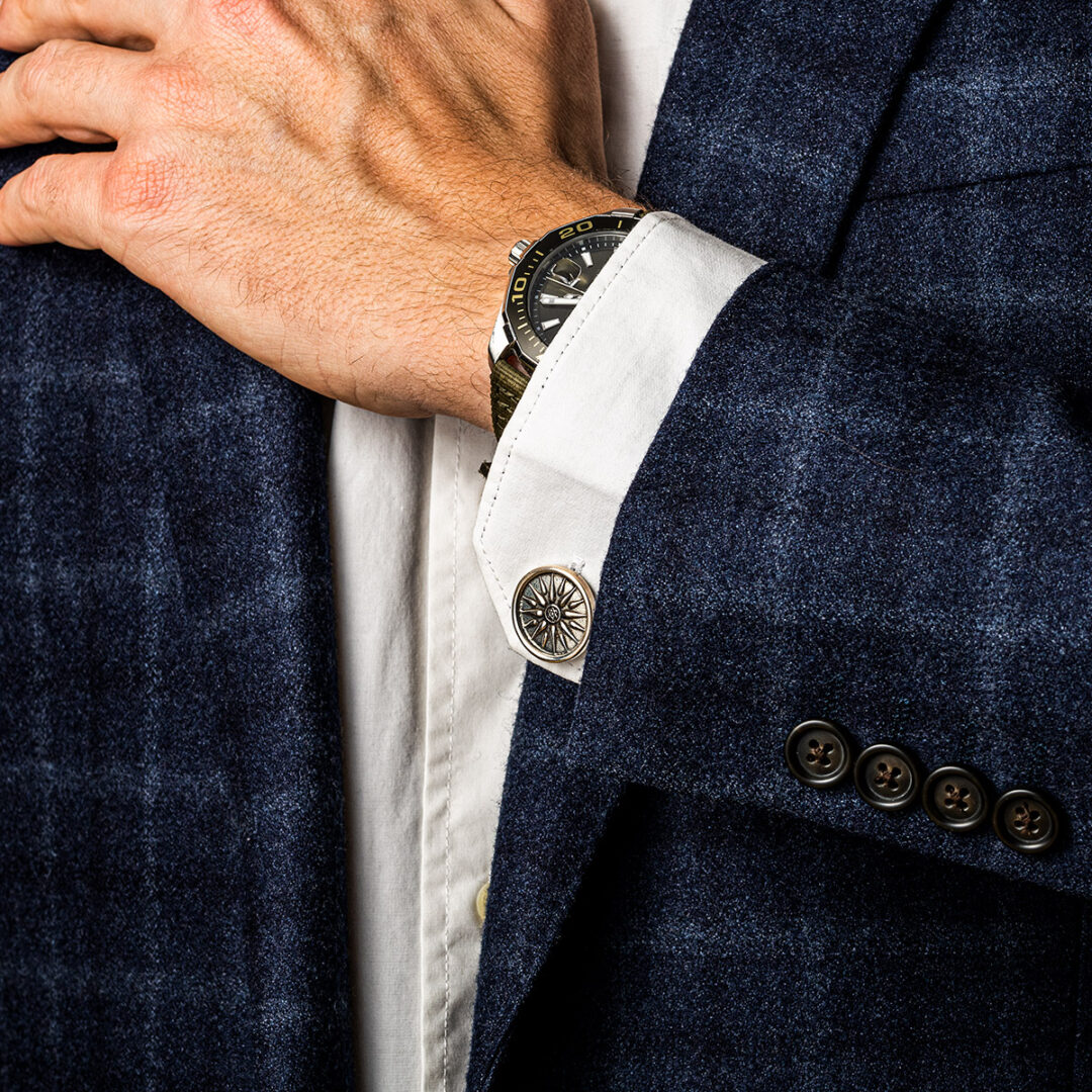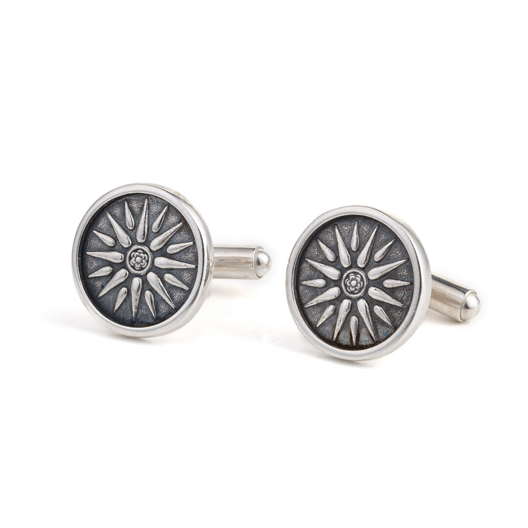 A beautiful pair of cufflinks inspired by the ancient Vergina sun symbol.