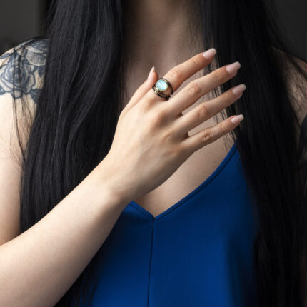 Byzantine Ring with Amazonite Doublet Stone – Sterling Silver Gold Plated