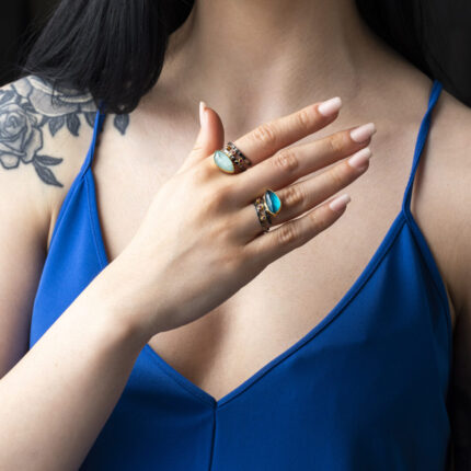 Amazonite and Zircon Oxidized Ring – 925 Sterling Silver and Gold Plated