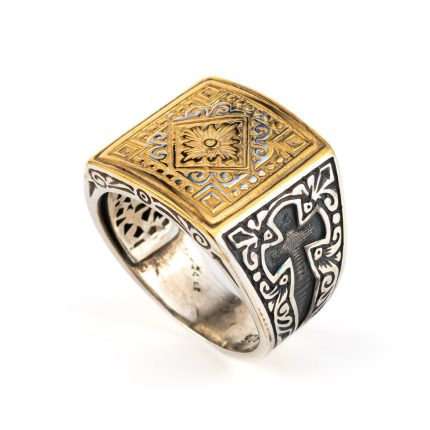 Byzantine Rhombus Ring with Stone – Gold Plated 925 Sterling Silver